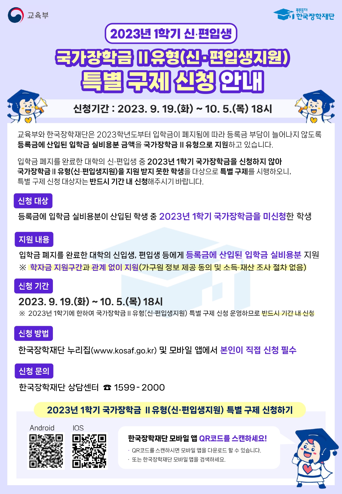 [안내] 2023학년도 1학기 신·편입생지원 국가장학금 미신청자 특별 구제 신청 안내