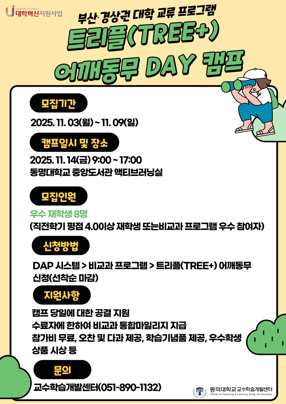 [대학혁신지원사업]2025학년도 트리플(TREE+) 어깨동무 캠프 신청 안내
